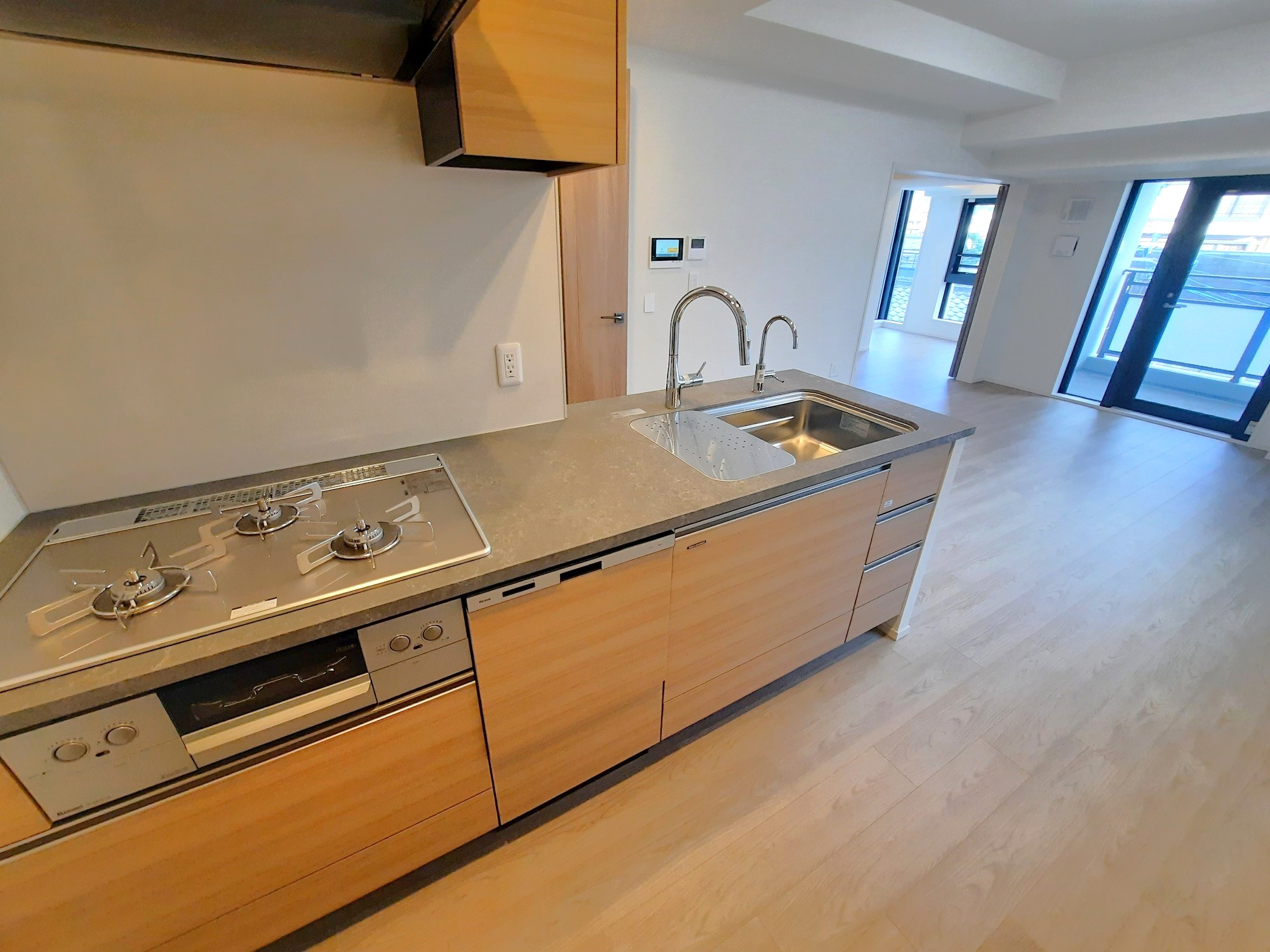 ・LDK システムキッチン(フィオレストーン天板、食器洗い乾燥機、ガラストップコンロ、 浄水機能付混合水栓) ガス温水床暖房